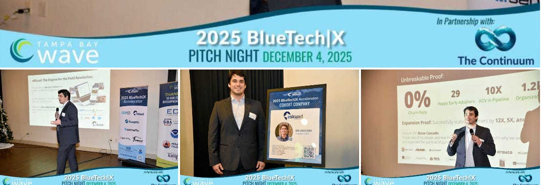 Huge congrats to the eSkuad team on pitching in person for the first time at BlueTechX in Tampa.
