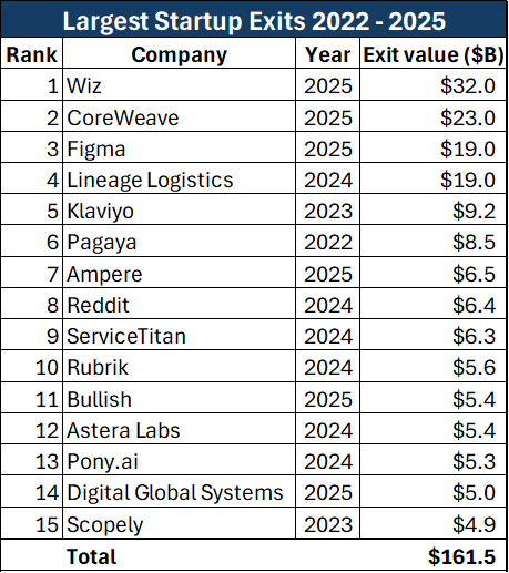 As we mentioned in our September newsletter, 8 of the 10 $1 billion-plus IPOs thus far in 2025 debuted at a price lower than at least one (and as many as three) of the companies’ private funding rounds, producing losses for VCs who invested in these rounds. One of the two that produced positive returns for everyone was Figma, the third-largest exit of the past four years, and pretty much the literal embodiment of the company you have to be in, regardless of price, if you subscribe to this idea.